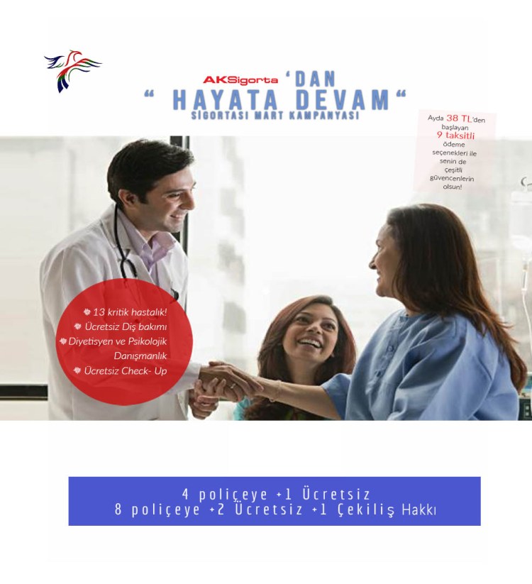 Hayata Devam Sigortası, dilediğin tazminat seçeneklerine göre farklı limitlerle yeni başlangıçlara, kanser tanısı konan kişiler için Anlaşmalı sağlık kuruluşlarında ücretsiz muayene ve görüntüleme işlemlerine ve hastalığın tedavi süresinde kişiye özel ücretsiz sağlık danışmanlığı ve tedavi destek paketi kullanımında kişilere özel bir çok destek sağlamaktadır. Ayrıntılı bilgi için